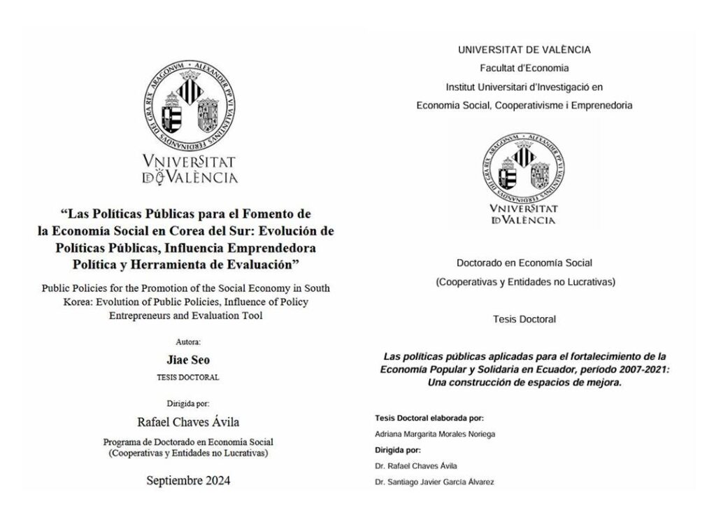 Ambas tesis han sido elaboradas en el marco del programa de Doctorado en Economía Social (Cooperativas y Entidades no Lucrativas) del Instituto Universitario de Investigación en Economía Social, Cooperativismo y Emprendimiento (IUDESCOOP) de la Universitat de València.